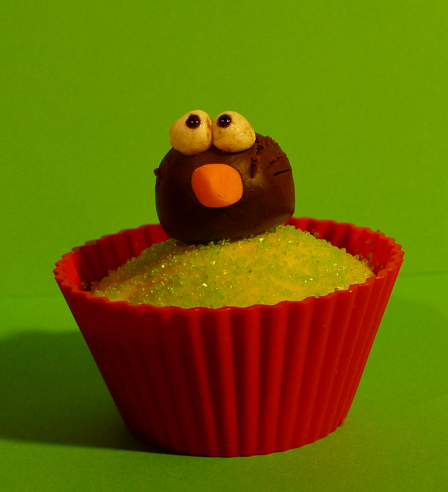 - el cuerpo es una bolita a la que le aremos un corte para hacer la boca y la lengua será una tirita roja, los ojos son dos bolitas con un punto negro de gel.